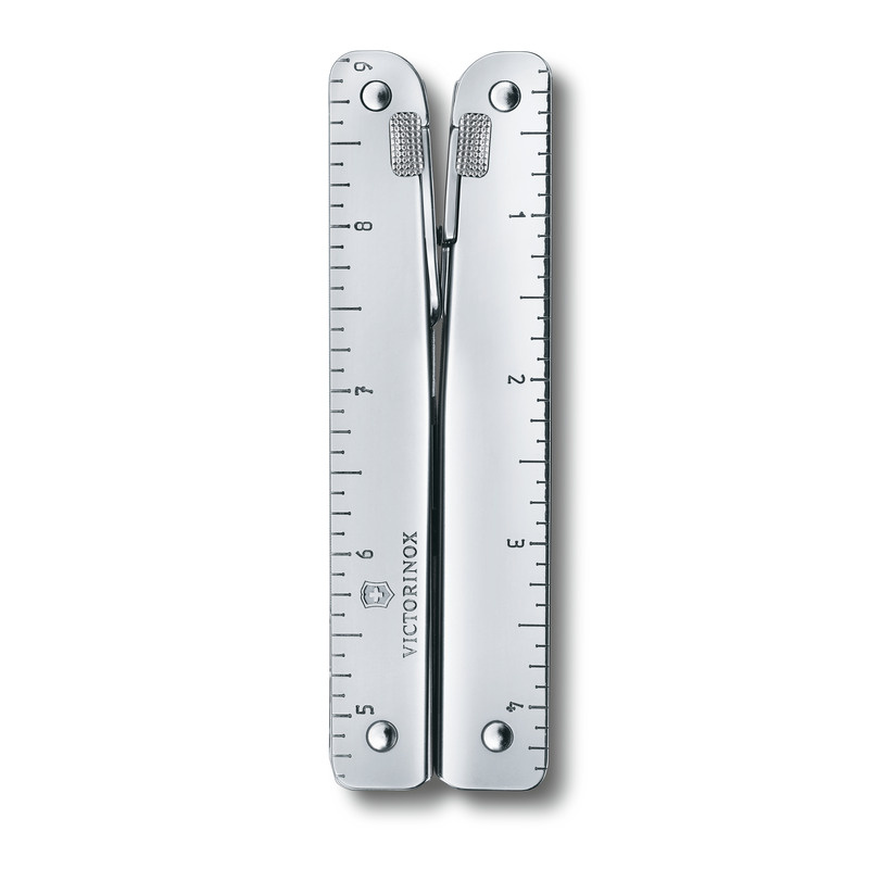 Swiss Tool X — предложение для тех, кто ищет нечто большее, чем карманный нож. Это целый набор инструментов, помещенный в один элегантный корпус с продуманным дизайном. Инструмент поставляется с кожаным чехлом. Характеристики: 1. шампур 2. плоскогубцы 3. отвертка 2 мм 4. отвертка 3 мм 5. кусачки 6. отвертка 5 мм 7. открывалка для бутылок 8. отвертка 7,5 мм 9. лезвие 10. ножницы 11. напильник по металлу 12. ножовка по металлу 13. пила по дереву 14. отвертка 1-2 звезды 15. стамеска 16. открывалка для ящиков 17. устройство для сгибания проволоки 18. инструмент для снятия изоляции 19. кусачки 20. консервный нож 21. мерный стакан (23 см) 22. измерительная лента (9 дюймов) 23. обжимка электрического кабеля 24. кожаный чехол с петлей для ремня 25. закаленные кусачки 26. монтажная проушина 27. 12 отдельных пружин 28. разблокировка замка 29. контейнер для розеток 30. розетка ключ - в комплекте головки: 31. малый торцевой ключ - в комплекте головки: 32. - Hex 3 33. - Hex 4 34. - Phillips 0 35. - Phillips 3 36. - Torx 10 37. - Torx 15 38. место для дополнительной головки 39. место для дополнительной головки 40. штопор 41. мини-отвертка L2 - гравировка на лезвии L3 - гравировка на крышке