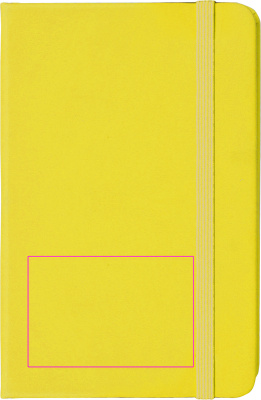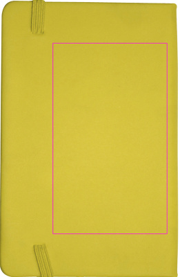 Тетрадь формата DIN A6 в бархатисто-полиуретановой обложке на 170 нейтральных страниц. На обложке напечатаем ваш логотип.