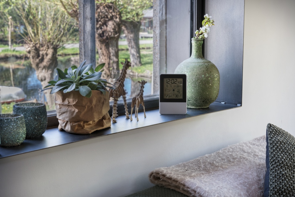 Внутренняя/наружная метеостанция с ЖК-экраном и специальным наружным датчиком. Функции: время и календарь, температура в помещении/на улице, прогноз погоды, влажность и будильник.