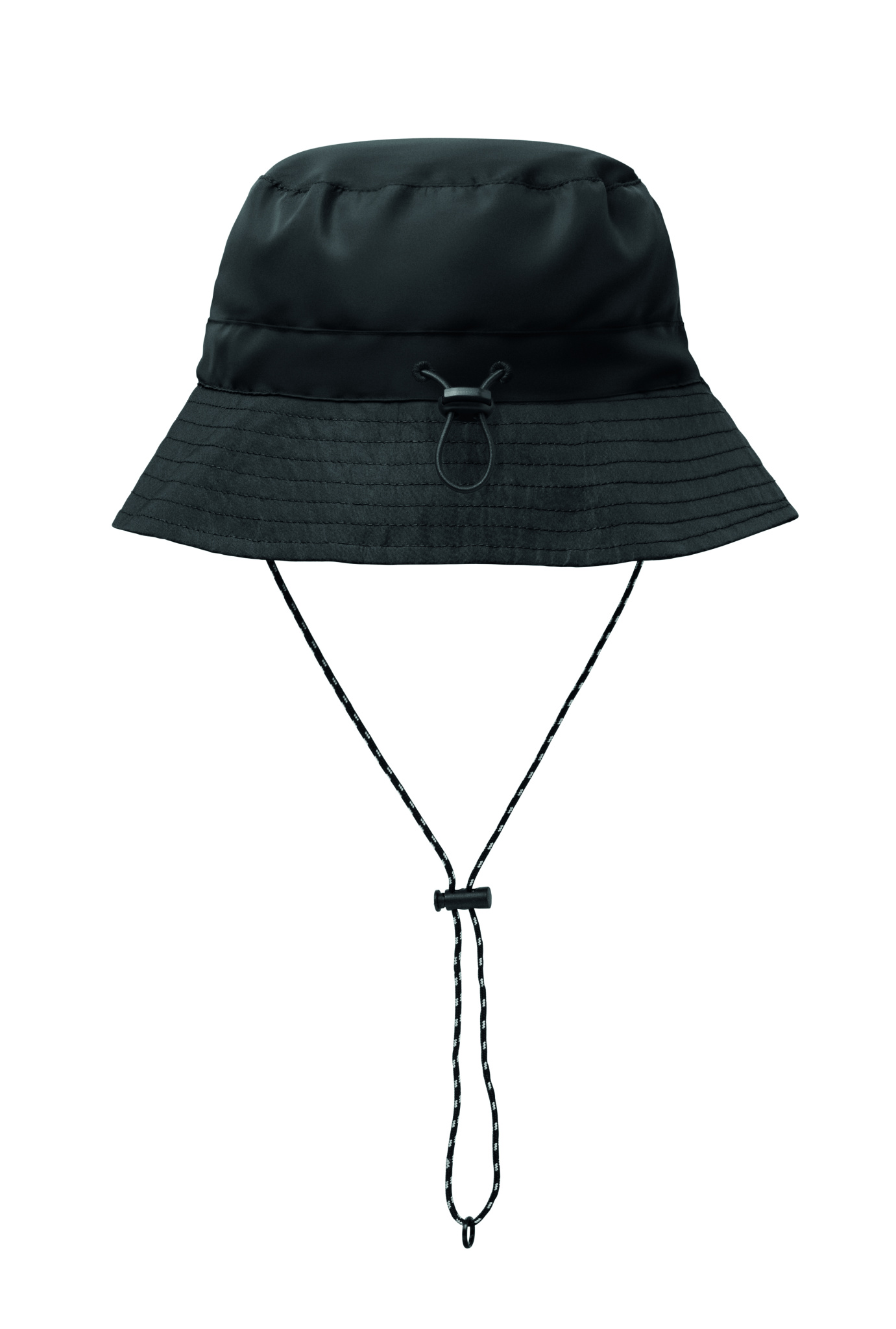 Water repellent fisherman hat made of polyester, includes self material pouch with ABS carabiner. 64 gr/m².