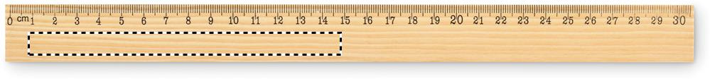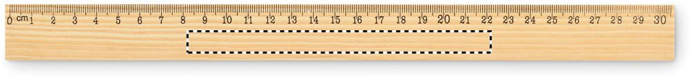 Pine wood ruler 30cm with centimetre scale on one side and inch scale on the other.