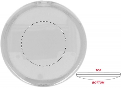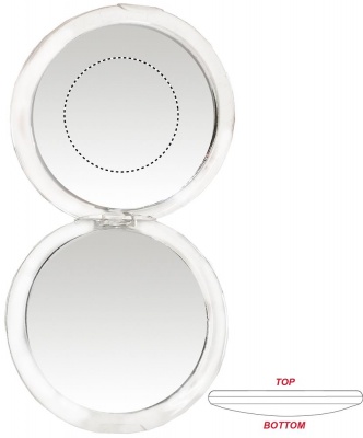 Круглое двойное зеркальце в пластиковом полупрозрачном корпусе.