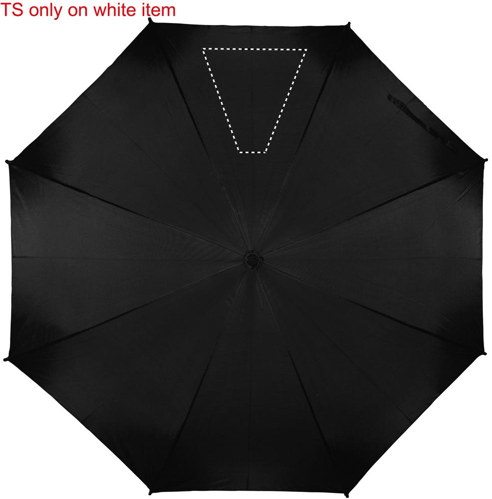 Зонт полуавтомат устойчивый к ветру с черным металлическим стержнем и черной пластиковой ручкой. Открытый купол диаметром Ø 103см
