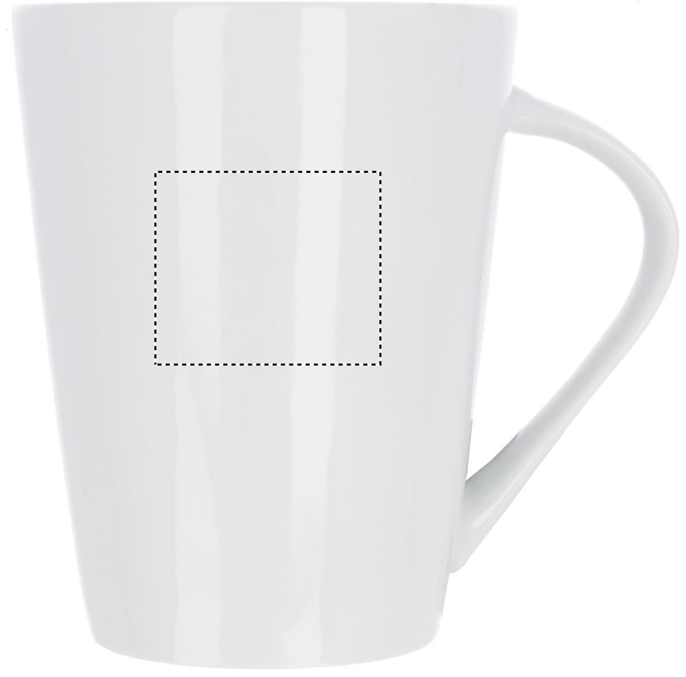 Porslinsmugg, konformad som rymmer 250 ml. Tampotryck tål ej diskmaskin. Keramisk transfer tål maskindisk. Levereras i bulkförpackning.