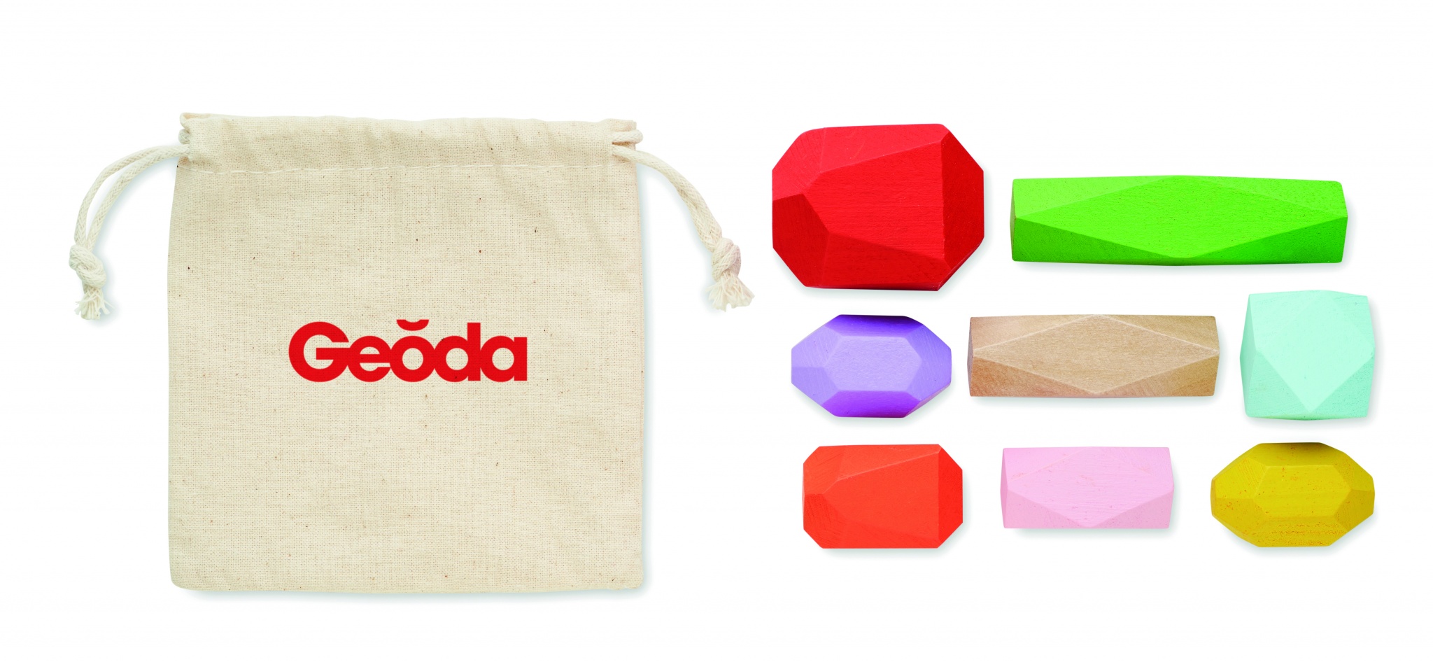 Logotrade profilreklam bild: 8 stapelbara träklossar i påse