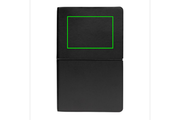 A5 anteckningsbok med mjukt omslag. 96 blad/192 sidor 80 g/m2 krämfärgat linjerat papper. Mjukt omslag i PU med svart elastiskt, horisontellt band.