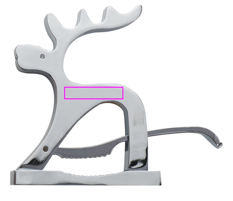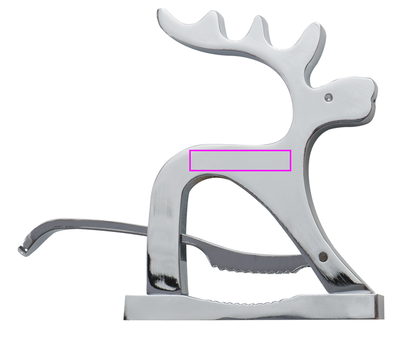 Högkvalitativ nötknäppare i form av en älg av metall. Knäcker dina muttrar med spakmekanism. Din logotyp kommer att lasergraveras på älgen.