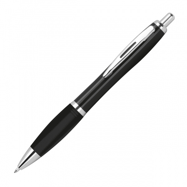 Kulpenna av återvunnen ABS med gummigreppzon och stor refill. Vi trycker din logotyp på höger sida av klippet.
