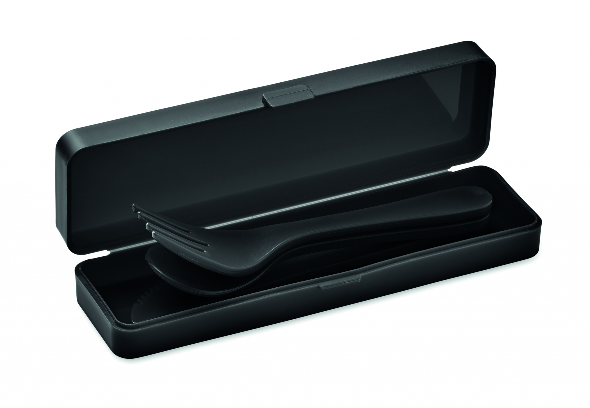 Återanvändbar PP-bestickset och fodral för att enkelt ta med sig. Innehåller sked, gaffel och kniv.