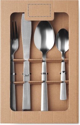 16-delad bestickset i rostfritt stål för 4 dukningar. Innehåller: tesked, bordssked, gaffel, kniv. Presenteras i en kraftpapperslåda.
