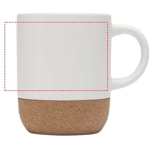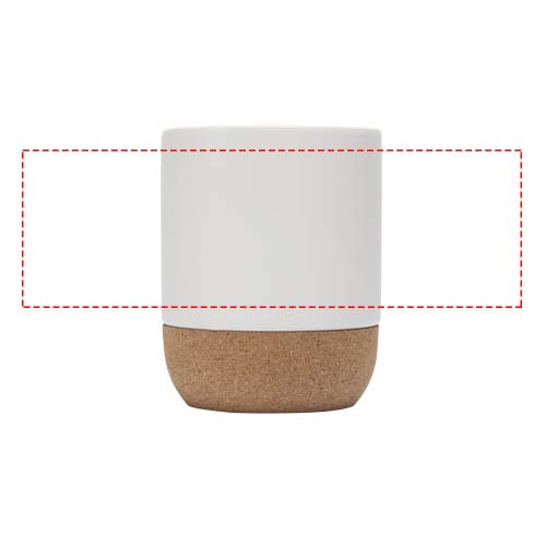 Keramisk mugg med korkdetaljer på undersidan och en speciell beläggning på utsidan som möjliggör sublimeringstryck. Blank vit in- och utsida. Handdisk med varmt vatten och milda rengöringsmedel. Levereras i en presentförpackning av återvunnen kartong. Volymkapacitet: 300 ml.