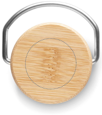 Dubbelväggig isolerande vakuumflaska i rostfritt stål för varma eller kalla drycker med lock i bambu och bärhandtag. Kapacitet: 1500 ml. Läcksäker.