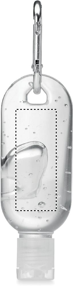 Handrengöringsgel i återfyllningsbar PET- flaska med vipplock och karbinhake. Icke-alkoholformulering. Kapacitet 30 ml.