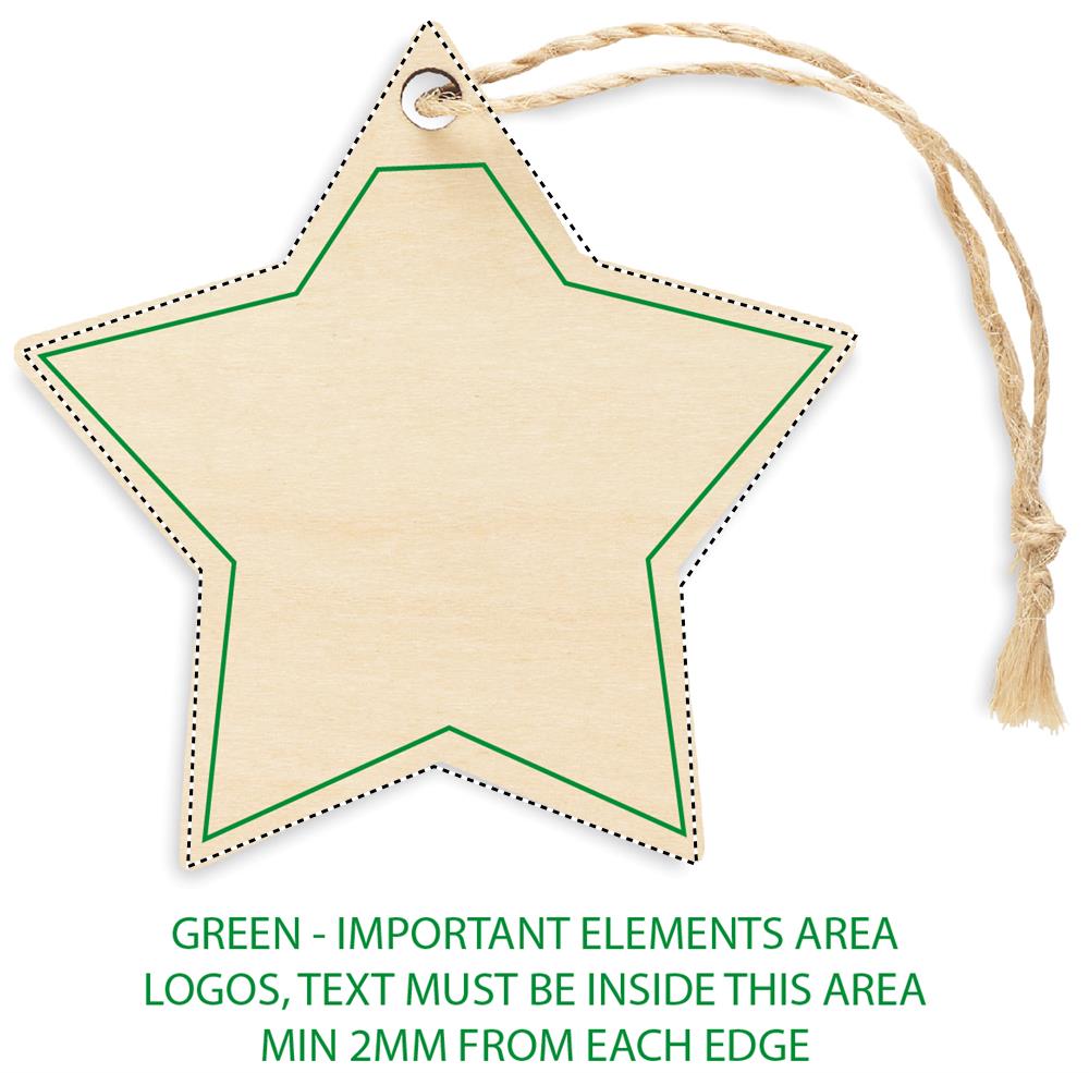 Julprydnad i plywood med jutetråd för sublimering i stjärnform. Vitt tryck är inte möjligt.