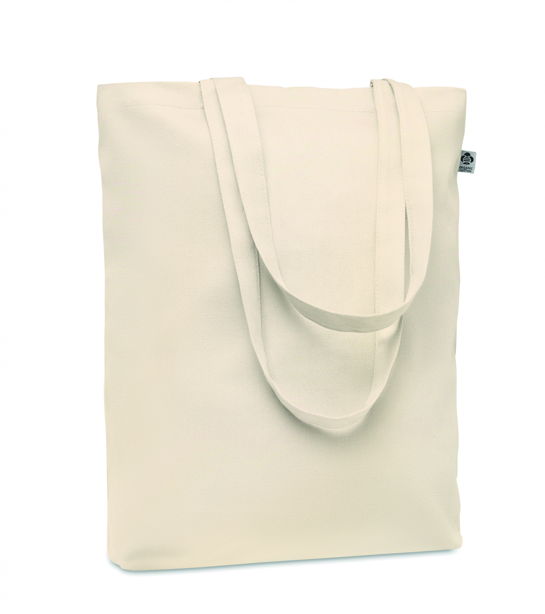 Tygkasse av ekologisk canvas med långa handtag och bottenkofte. 270 gr/m².