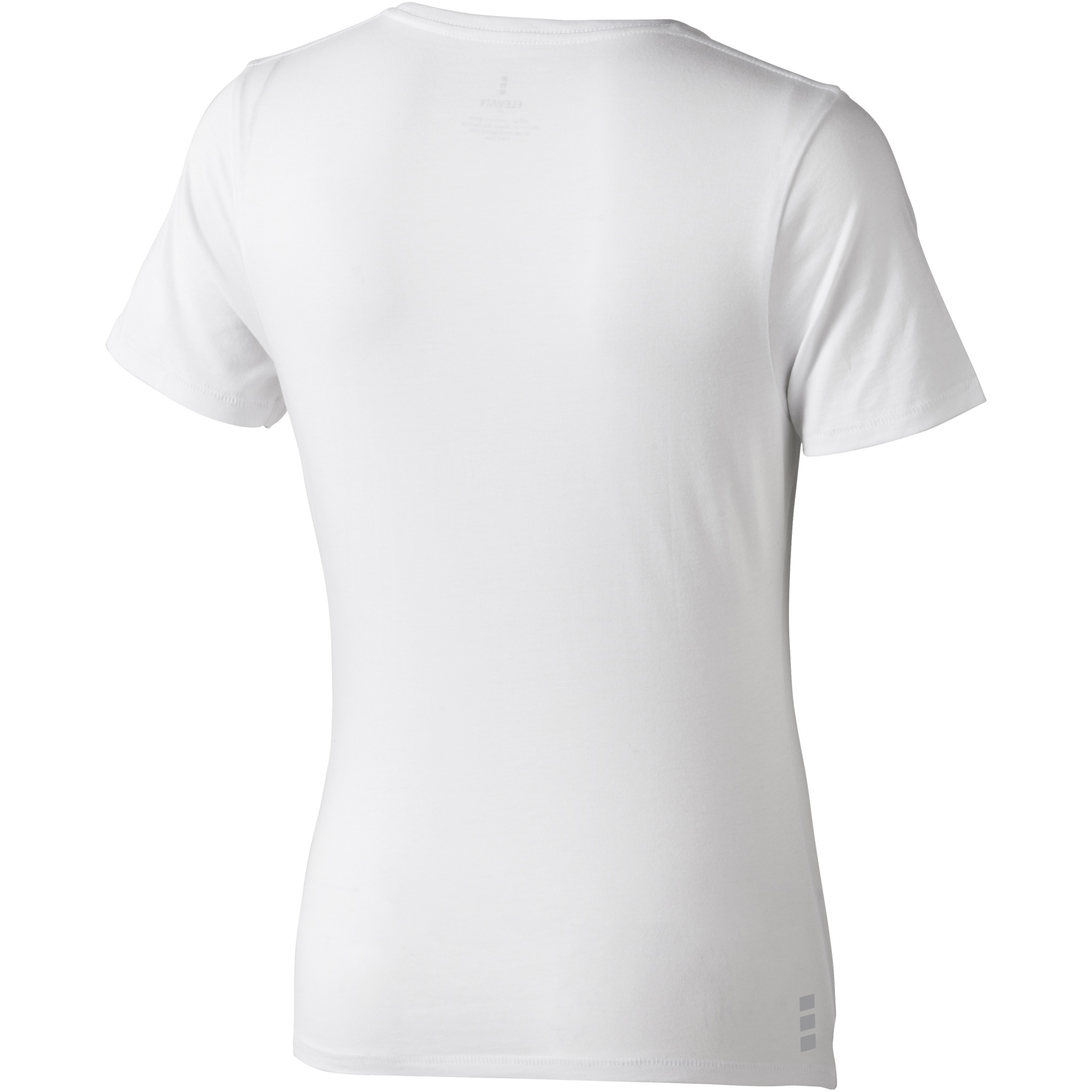 Kawartha kortärmade ekologisk V-hals t-shirt dam är ett elegant och hållbart val. Tillverkad av 95 % ekologisk bomull. Med en tygvikt på 200 g/m² är den här t-shirten inte bara bra för miljön utan också mjuk och bekväm att bära. De 5 % elastan säkerställer en mjuk och stretchig passform. Med sin V-hals och korta ärmar är den här t-shirten både hållbar och modern.