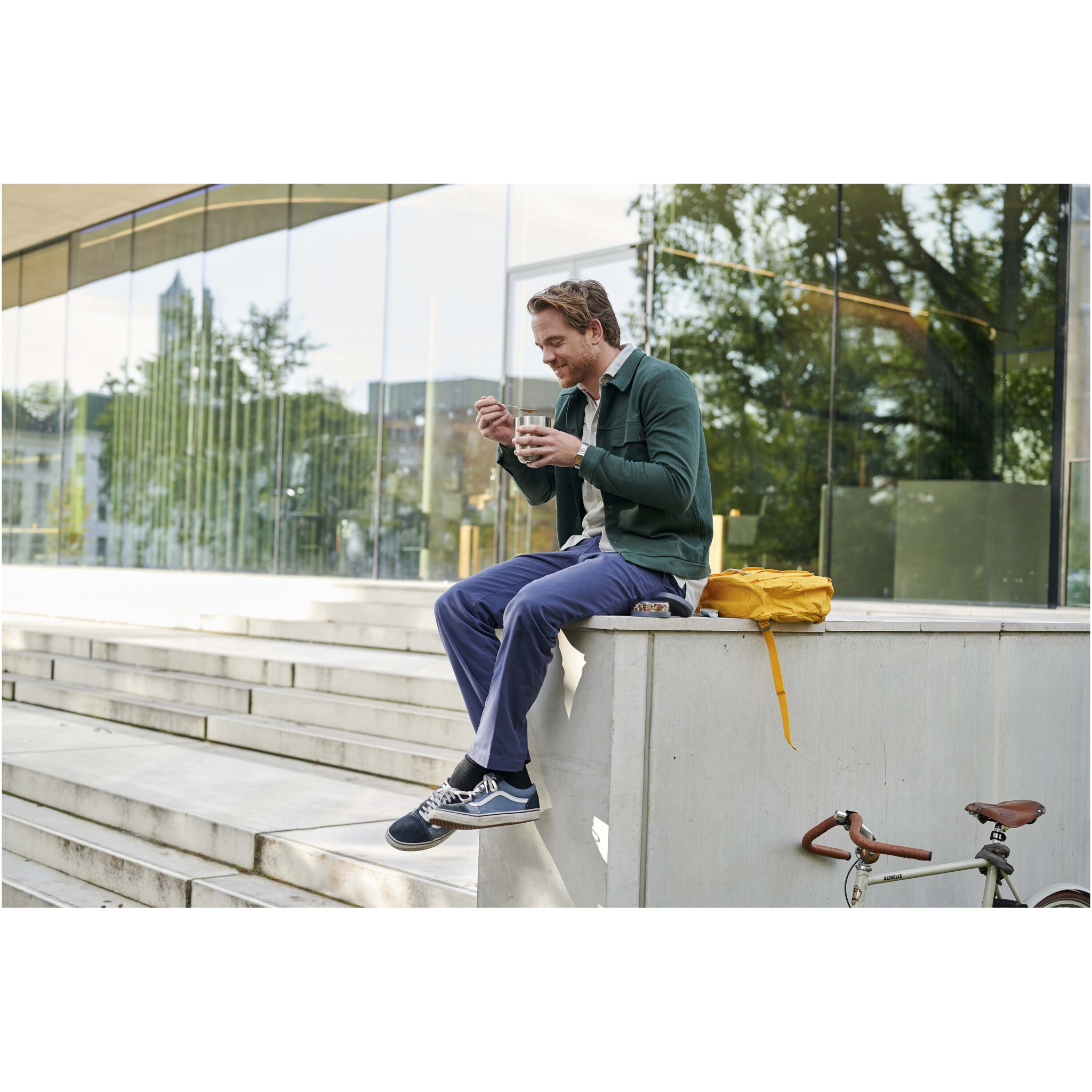 Isolerad lunchbägare med två olika fack som håller ingredienserna åtskilda. Båda behållarna har ett separat lock så att ingredienserna inte blandas. Håller maten varm i cirka 6–8 timmar eller kall i upp till cirka 12 timmar. Den övre genomskinliga behållarens kapacitet är 200 ml. Bottenbehållarens kapacitet är 500 ml. Tillverkad av slitstarkt material med en utsida som håller sig sval och torr. Handdisk rekommenderas. Plastdelarna i locket kan diskas i diskmaskin.