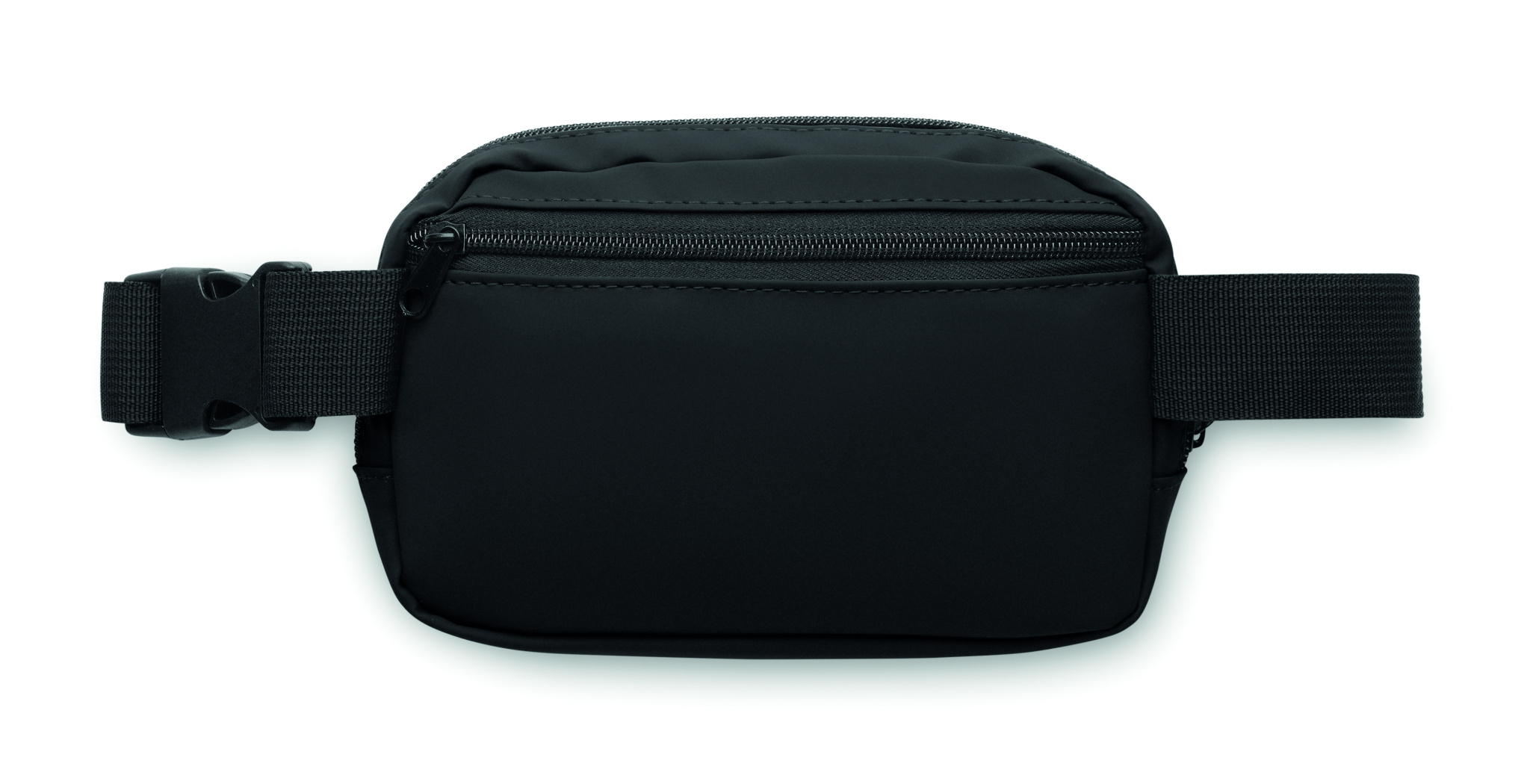 Midjeväska (cross body bag) i mjuk PU med foder i 210D RPET polyester. 1 huvudficka med dragkedja, 1 bakficka med dragkedja och innerfack i mesh.