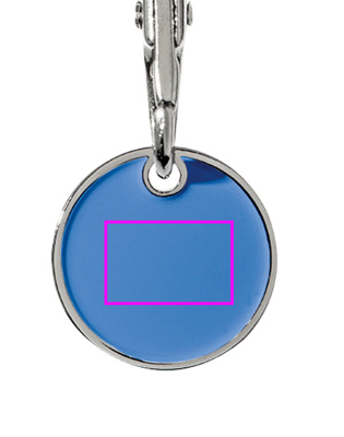 Metallnyckelring med karbinhake och shoppingmynt. Ena sidan av myntet är färgad. Vi graverar din logotyp på silversidan.