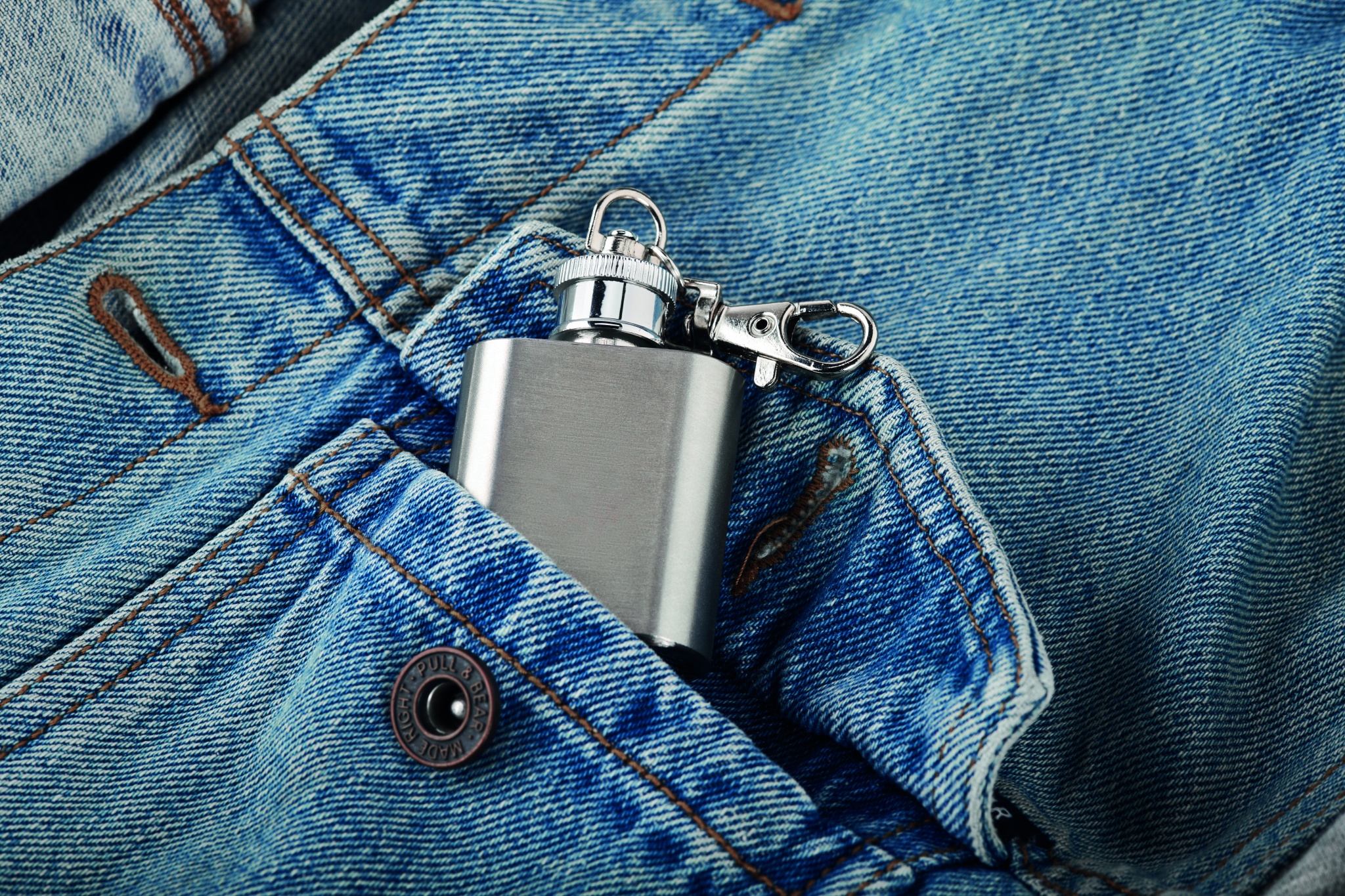 Nyckelring för hipflask i rostfritt stål. Kapacitet: 28 ml.
