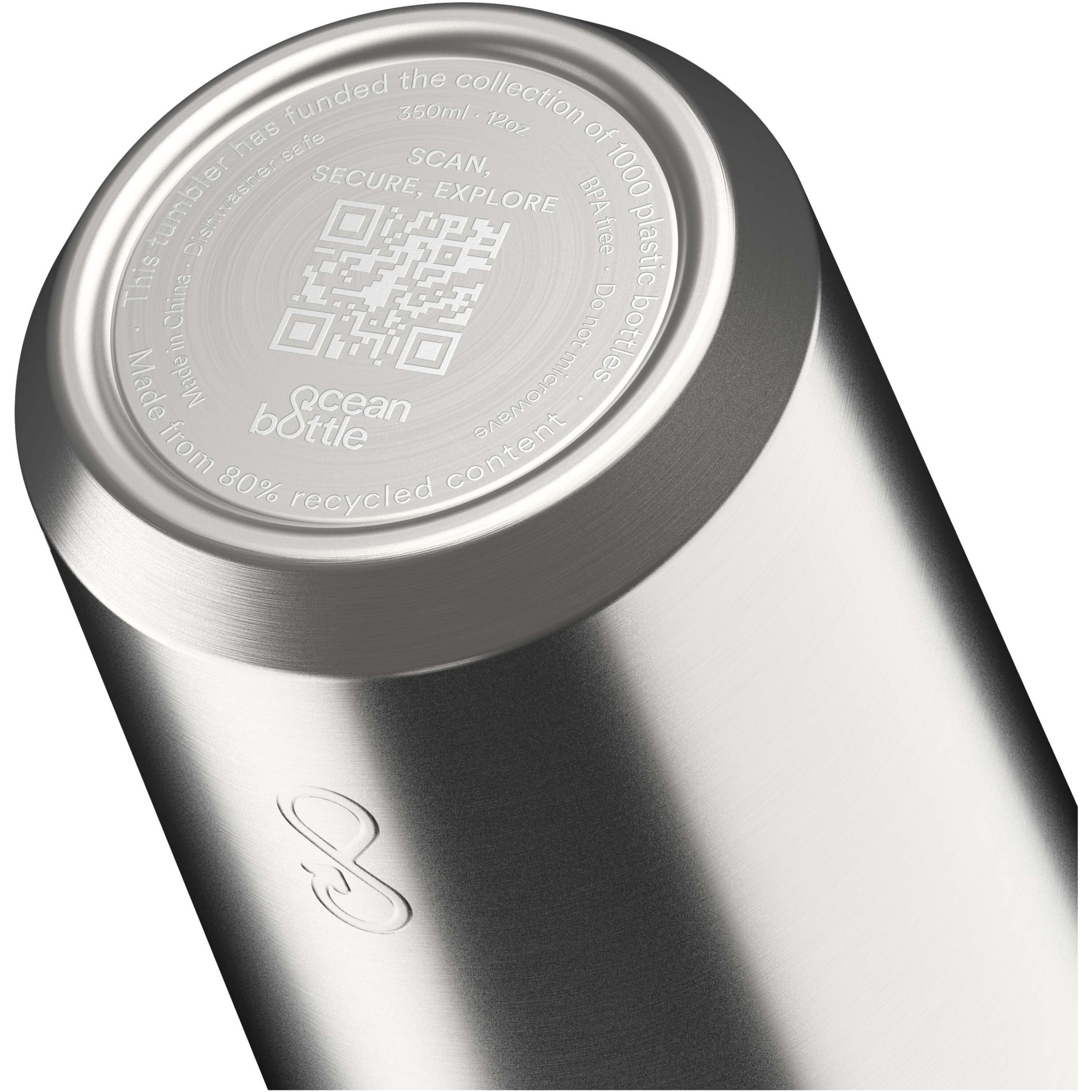 Muggen Ocean Bottle på 350 ml har vakuumisolering för att hålla drycker varma i upp till 8 timmar och kalla i upp till 18 timmar. Den passar smidigt under de flesta kaffemaskiner och i de flesta bilars mugghållare. Alla Ocean Bottle är helt koldioxidneutrala och för varje flaska samlas 1 000 plastflaskor in för att förbättra levnadsförhållandena i kustsamhällen. Termosen är tillverkad av 90 % återvunnet rostfritt stål och andra återvunna material. Levereras i en presentförpackning av återvunnen kartong.