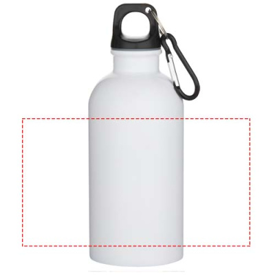 Håll alltid vätskebalansen uppe med denna hållbara men lätta vattenflaska på 400 ml tillverkad av RCS-certifierat återvunnet rostfritt stål, med en speciell beläggning för sublimering. Den är den perfekta följeslagaren för sport, dagsutflykter eller för kontoret. Flaskan Oregon med enkelvägg har ett vridbart lock och gott om plats för att lägga till logotyper. Fäst den bifogade karbinhaken (inte lämplig för klättring) säkert på en väska för att undvika att tappa bort den.