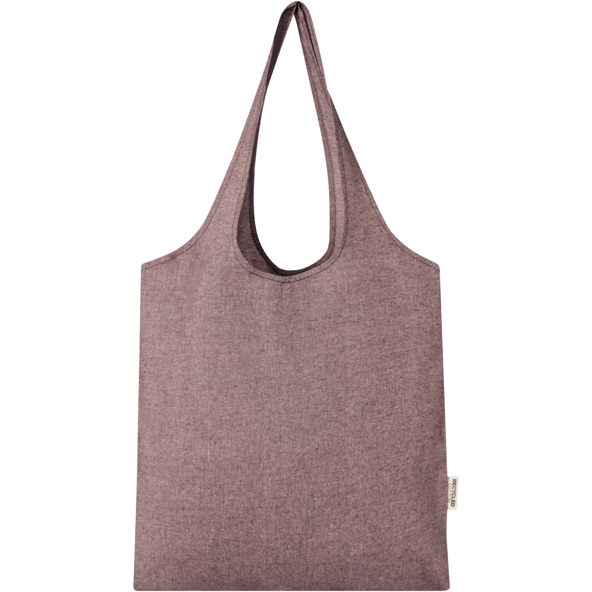 Shoppingtygväska på 150 g/m² med en trendig design med ett öppet huvudfack med 25 cm långa handtag. Tillverkad av återvunnen bomull och helt återanvändbar, vilket gör det till ett utmärkt alternativ till plastpåsar. Det kan finnas mindre variationer i färgen på den faktiska produkten på grund av produktionsprocessens art. Bärkraft upp till 5 kg.