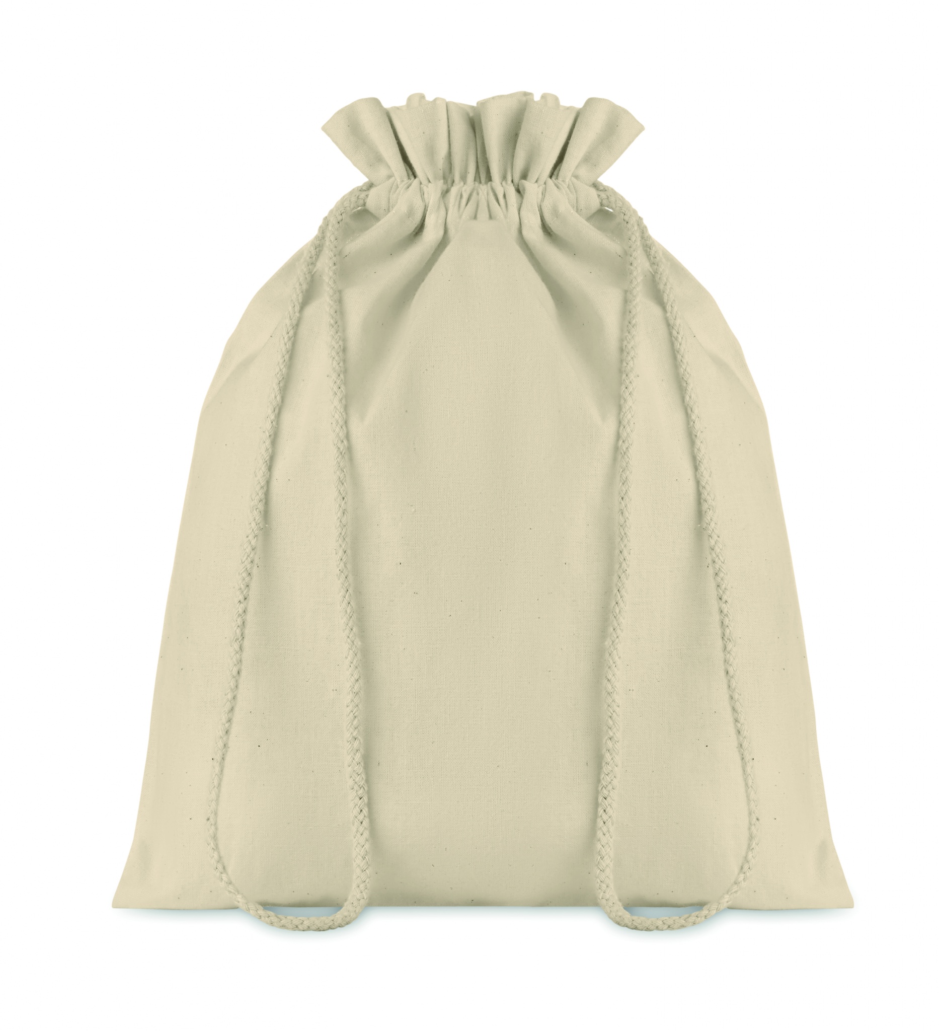 Meduim presentpåse i naturfärgad bomull med dragsko. Storlek 25 x 32 cm. Gramvikt: 105 gr/m². (se även MO9731)