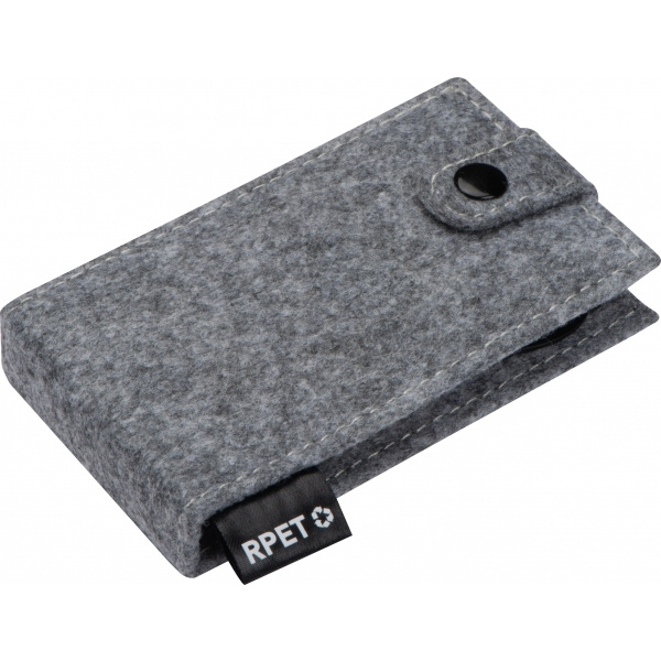 Attraktivt manikyrset av filt (återvunnen PET). Den innehåller en nagelsax, en nagelfil, nagelklippare, pincett och två nagelbandsskjutare. Vi placerar din logotyp på framsidan av fodralet.