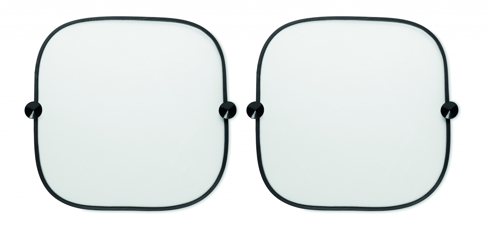 Set med 2 st solskydd till bilen. Varje solskydd har 2 st sugproppar. Material polyester.