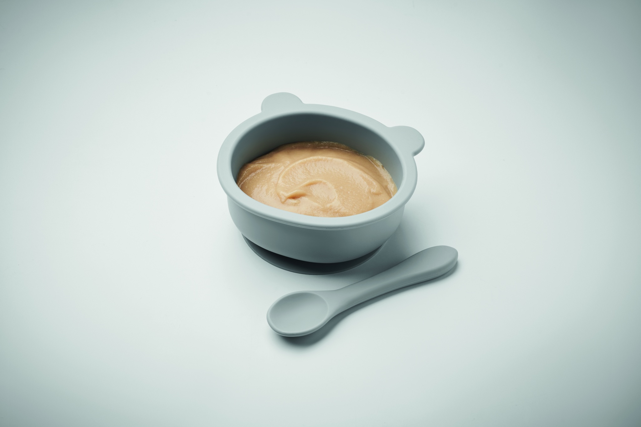 Skål & silikonsked, baby set, Grå