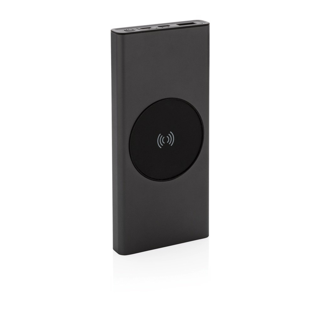 Ultrasnabb powerbank tillverkad av RCS (Recycled Claim Standard) certifierad återvunnen aluminium och ABS. Totalt återvunnet innehåll: 28% baserat på total produktvikt. RCS certifiering säkerställer en helt certifierad leveranskedja av de återvunna materialen. Aluminium förlorar inte sina egenskaper i återvinningsprocessen och kan återvinnas i det oändliga. Powerbanken har ett långvarigt A-graderat 10.000 mAh lithium polymer batteri. C output porten stödjer snabbladdning upp till 18W samt snabb återladdning inom 3 timmar. Den trådlösa laddningen stödjer trådlös laddning upp till 10W. Strömindikatorn visar energinivån så att du vet när det är dags att ladda på nytt. Produkt och accessoarer är 100% PVC-fria. Type C laddningskabel i RCS certifierad återvunnen aluminium, TPE och PET medföljer. Levereras i FSC® mix förpackning. USB output 5/3A, 9V/2A. 12V/1.5A. Type C output: 5V/3A, 9V/2A, 12V/1.5A. Type C input: 5V/3A, 9V/2A, 12V/1.5A. Micro USB input: 5V/2A, 9V/2A, 12V/1.5A.