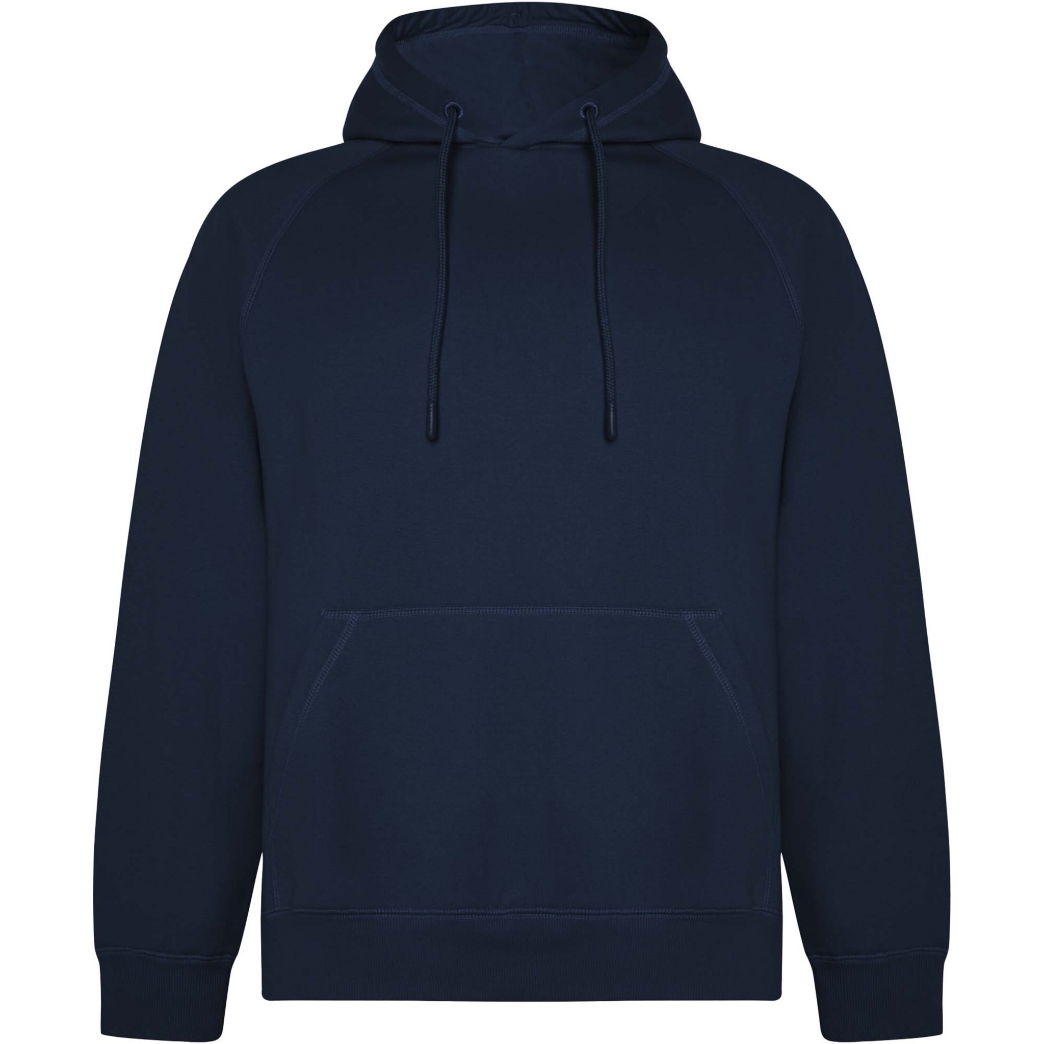 Unisex hoodie i ekologisk bomull och återvunnen polyester. Ficka i kängurustil. Foder i enkeljersey i huvan. Runda justerbara dragsnoddar och broderade öljetter. Ärmslut och midja i 2x1 ribbat tyg. Styckförpackad i återvunnen förpackning. Den manliga modellen är 185 cm och bär storlek L, den kvinnliga modellen är 168 cm och bär storlek S.